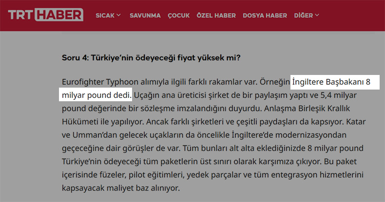 Geçtiğimiz günlerde ise Türkiye, hava gücünü güçlendirmek amacıyla İngiltere ile 20 adet Eurofighter Typhoon savaş uçağı alımı için 8 milyar sterlin (yaklaşık 10 milyar dolar) değerinde yeni bir mutabakata imza attı.