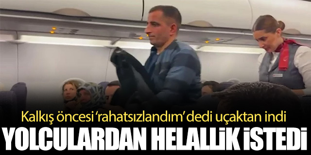 Erzurum- İstanbul seferini yapan yolcu uçağı, havalanmak için pist başına ilerlerken yolculardan biri, rahatsızlandığını belirtip kabin ekibinden yardım istedi. Hosteslerin yardımıyla uçaktan inen kişi, diğer yolculardan helallik istedi.