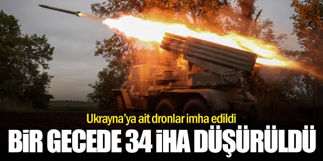 Rusya Savunma Bakanlığı, hava savunma sistemlerinin gece boyunca Ukrayna ordusuna ait 34 insansız hava aracını (İHA) etkisiz hale getirdiğini duyurdu. Bakanlığın açıklamasında, “Görevdeki hava savunma kuvvetleri dün gece boyunca Ukrayna’ya ait 34 uçak tipi İHA’yı imha etti” denildi.