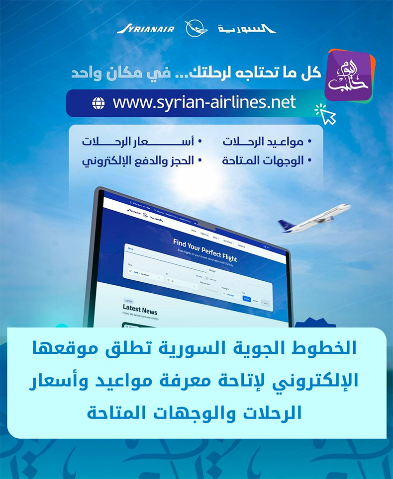 2024 yılının Aralık ayında faaliyetlerine yeniden başlayan Syrian Airlines, yolcuların uçuş programlarını ve fiyatlarını, mevcut destinasyonları görüntülemelerine ve elektronik rezervasyon ve ödeme yapmalarına olanak tanıyan yeni bir web sitesinin lansmanını duyurdu.