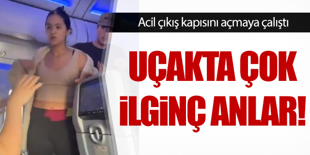 Kalkış öncesi uçaktaki bir sesi arıza sesine benzeren kadın, uçağın kalkmaması gerektiğini söyleyerek acil çıkış kapısını açmaya çalıştı. Kadın, kabin ekibi tarafından sakinleştirilmeye çalışıldı.