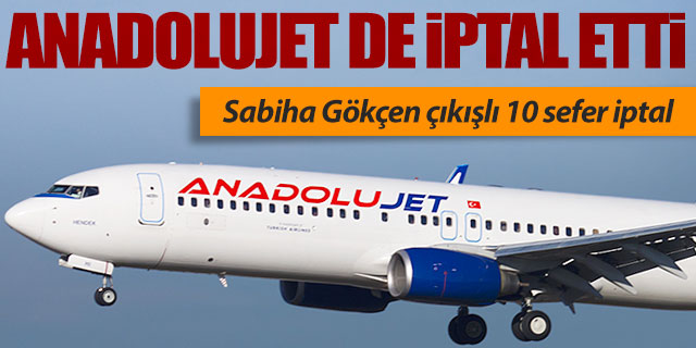 Anadolujet de hava koşulları sebebiyle İstanbul Sabiha Gökçen Havalimanı'ndan yapacağı bazı seferlerinin iptal edildiğini resmi internet sitesi üzerinden yaptığı açıklama ile duyurdu.