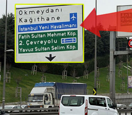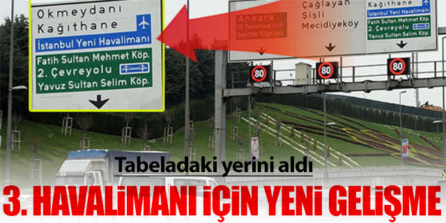 Yapımı devam eden ve 29 Ekim'de açılacak olan 3. Havalimanı, TEM ve D-100'de bulunan karayollarına ait yön levhalarındaki yerini aldı.