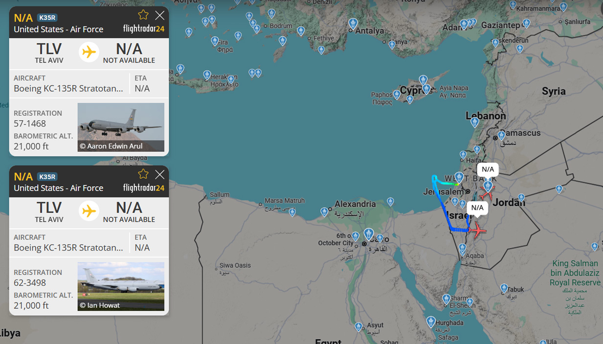 Edinilen bilgilere göre Boeing KC-135R Stratotanker tipi iki yakıt ikmal uçağı, Türkiye saatiyle 12.00 sularında Tel Aviv’den kalkış yaptı. Söz konusu uçakların havalanması, bölgede hava operasyonlarının genişleyebileceği yönünde yorumlara neden oldu.