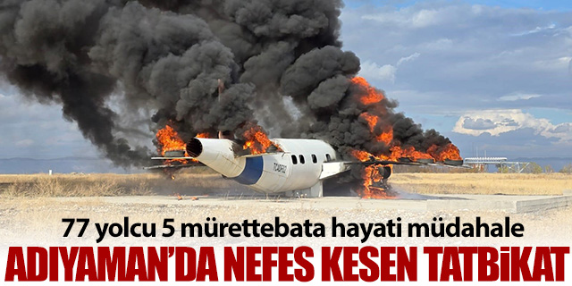 Adıyaman'da 77 yolcu, 5 mürettebat olmak üzere 82 kişinin bulunduğu yolcu uçağı ‘Kaza kırıma uğrama' tatbikatı nefes kesti.