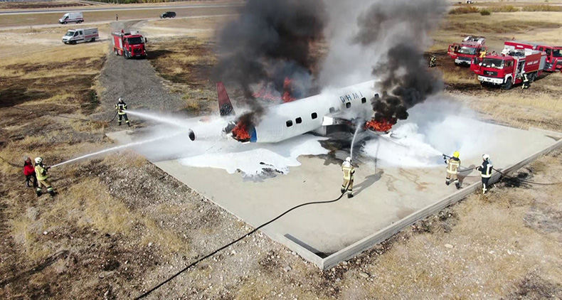 Tatbikat için hazırlanan dev uçak maketi, bir anda ateş topuna döndü. Enkaz bölgesine ise çok sayıda itfaiye ekipleri, Acil Sağlık ekipleri, AFAD ekipleri, UMKE ve havalimanı görevlileri sevk edildi.