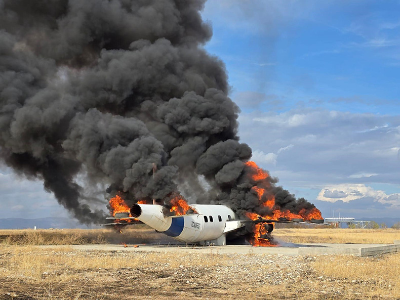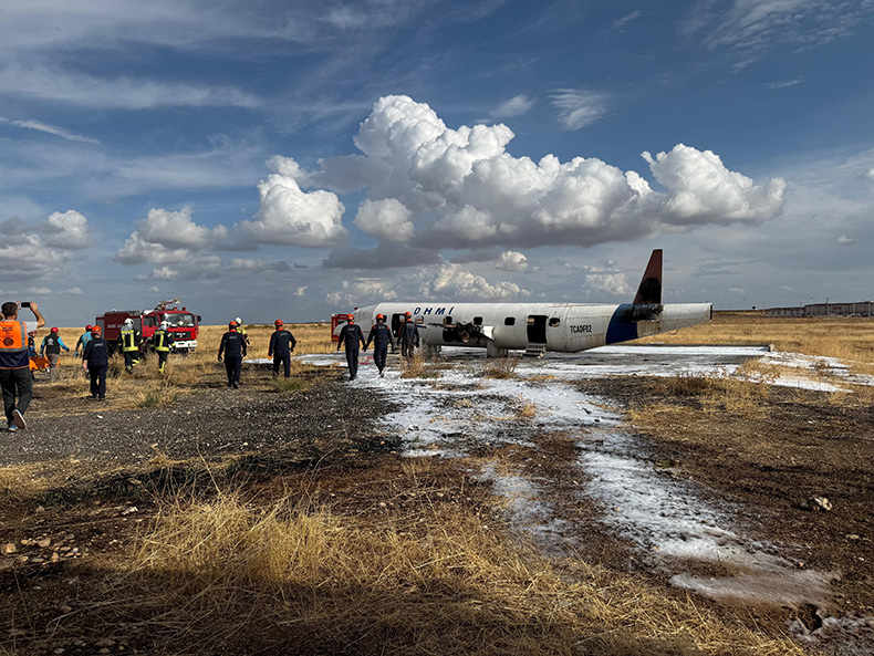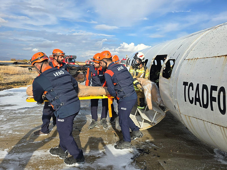 Olay yerine gelen itfaiye ekipleri her iki motoru ve kanatları alev alan uçağa köpüklü su sıktı. Söndürülen yangın sonrasında yine itfaiye ekipleri tarafından uçak içerisinde bulunan 77 yolcu 5 mürettebat tek tek bulundukları yerden çıkarıldı. Gerçekleştirilen tatbikat başarılı bir şekilde sona erdi.