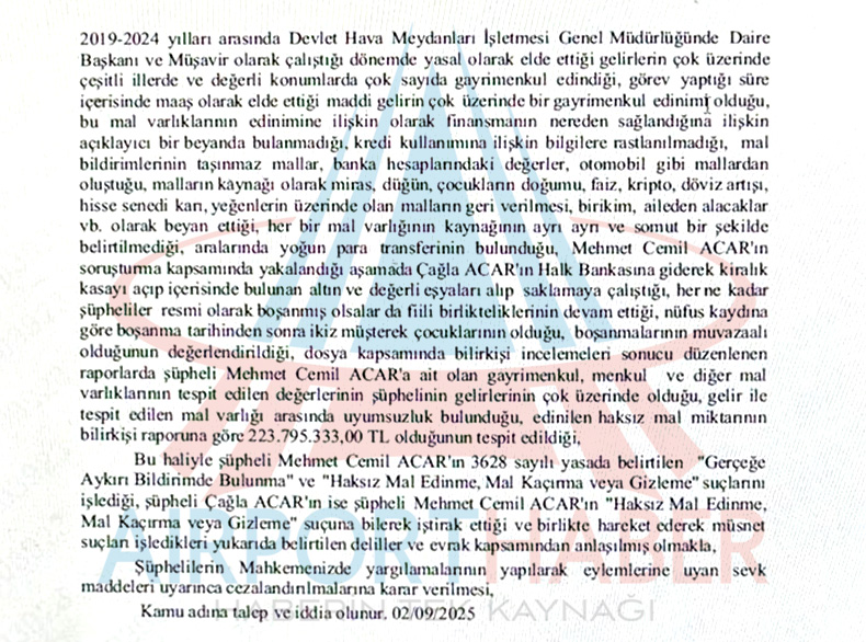 Böylece, ilk etapta “kasadan çıkan altın” başlığıyla gündeme gelen Cemil Acar dosyası, artık geliriyle açıklanamayan 223 milyon TL’lik servet boyutuna ulaşmış durumda.