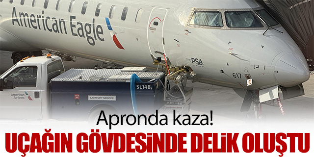 American Eagle uçağın apron aracı çarptı, uçakta hasar oluştu.