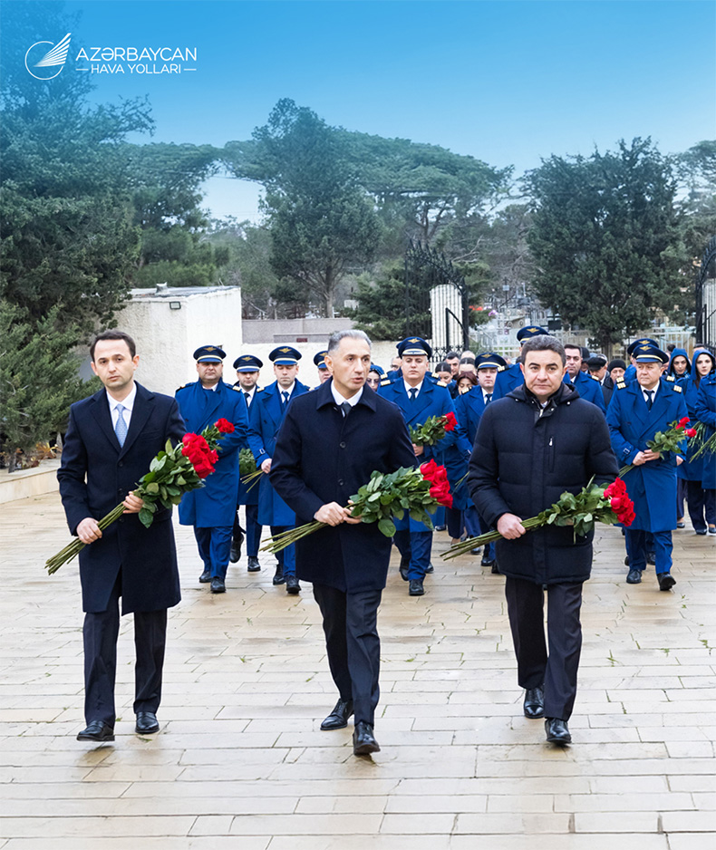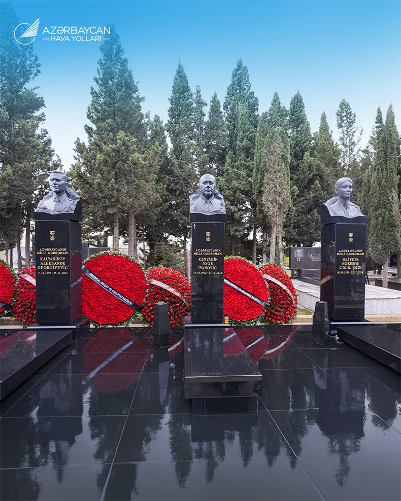 Tören kapsamında Dijital Kalkınma ve Ulaştırma Bakanı Reşad Nebiyev, AZCON Holding İcra Direktörü Şahin Babayev, Azerbaycan Hava Yolları (AZAL) AŞ Başkanı Samir Rzayev ve devlet kurumlarının temsilcileri, hayatını kaybeden mürettebat üyelerinin aileleriyle birlikte II. Fahri Hiyaban’ı ziyaret ettiler. Törene katılanlar mezarlara çiçek bırakarak, kurbanların anısını bir dakikalık saygı duruşuyla andılar.