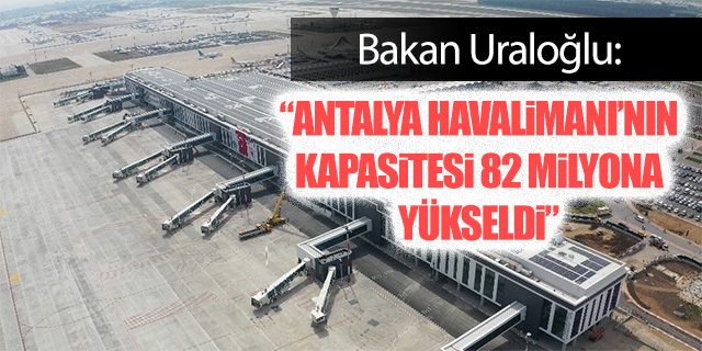Ulaştırma ve Altyapı Bakanı Abdulkadir Uraloğlu, "Genişleme projesi kapsamında Antalya havalimanımızın yıllık yolcu kapasitesini 35 milyondan 82 milyona yükselttik" dedi.