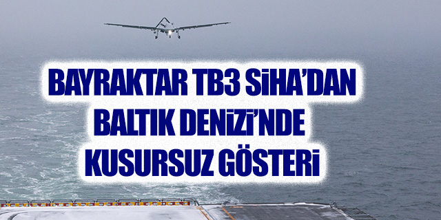 NATO'nun Steadfast Dart-2026 tatbikatı kapsamında TCG ANADOLU'da konuşlu bulunan Bayraktar TB3 SİHA, dondurucu soğuk, yoğun kar yağışı ve şiddetli rüzgâra rağmen Baltık Denizi'ndeki uçuş gösterimini başarıyla tamamladı. Tatbikatın bu safhasında zorlu hava şartlarında uçabilen tek hava aracı olan Bayraktar TB3, müttefik ülke temsilcilerinden tam not aldı.