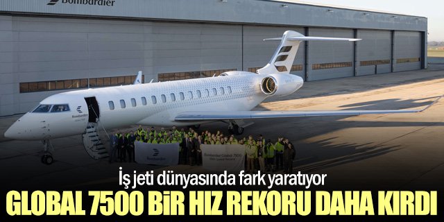 Bombardier, ultra uzun menzilli iş jeti Global 7500’in 150’inci hız rekoruna ulaştığını duyurdu. Böylece tek bir iş jeti modeli tarafından kaydedilen en fazla hız rekoru unvanı da Global 7500’e geçmiş oldu.