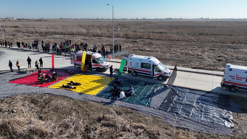 Çukurova Uluslararası Havalimanı’nda, Uluslararası Sivil Havacılık Örgütü (ICAO) standartları gereğince en geç iki yılda bir düzenlenmesi zorunlu olan geniş katılımlı acil durum tatbikatı başarıyla gerçekleştirildi. Havalimanı emniyet ve operasyonel devamlılığının sağlanması amacıyla düzenlenen tatbikatta, olası hava aracı kazalarında uygulanacak acil durum planları test edildi.
