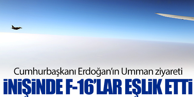 Öte yandan Umman Hava Kuvvetlerine ait F-16 uçaklar, Özel Sultanlık Havaalanı'na inişinde Cumhurbaşkanı Erdoğan'ın uçağına eşlik etti.