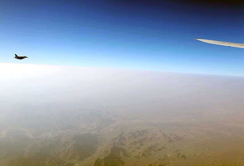 Cumhurbaşkanı Recep Tayyip Erdoğan, Katar'ın ardından Umman'a geçerken Maskat Havaalanına inişinde F-16 savaş uçakları eşlik etti.