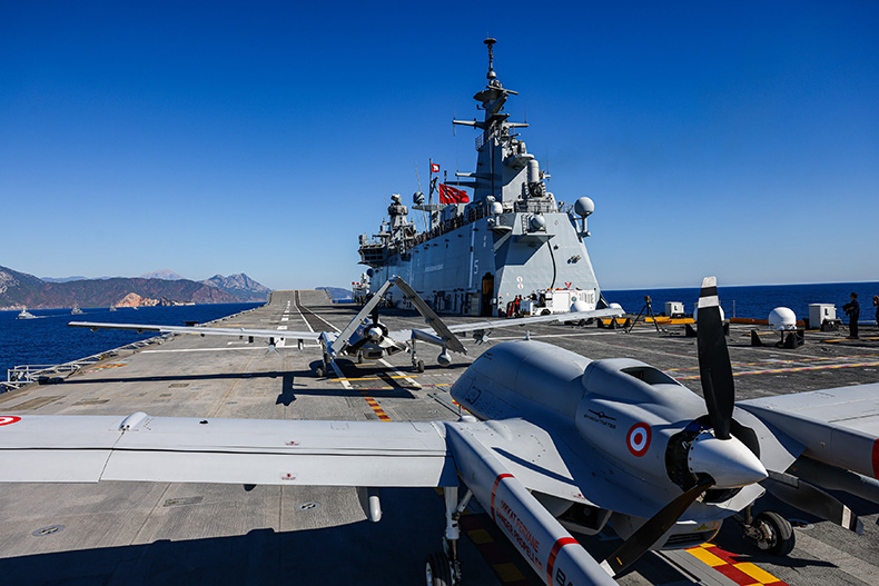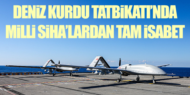 Türkiye'nin ilk SİHA gemisi TCG Anadolu'dan havalanan iki Bayraktar TB3 SİHA, DENİZKURDU tatbikatının Doğu Akdeniz'i kapsayan bölümünde hedeflerini kusursuz bir şekilde imha etti. KKTC'den kalkarak tatbikata katılan Bayraktar AKINCI TİHA ise 3 farklı mühimmatla yaptığı atışlarda hedefleri tam isabetle vurdu.