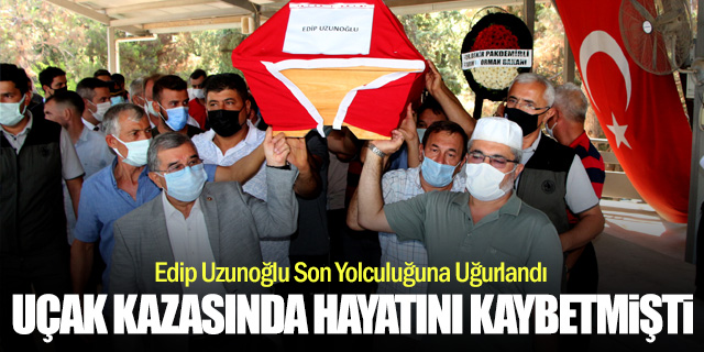 Kahramanmaraş'ta çıkan orman yangınını söndürme çalışması sırasında düşen uçakta bulunan emekli okul müdürü koordinatör Edip Uzunoğlu, memleketi Adana'da son yolculuğuna uğurlandı.