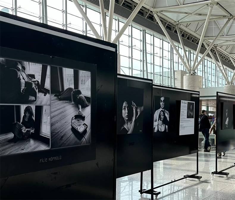 Kadına yönelik şiddete karşı toplumsal farkındalığı artırmayı hedefleyen sergi, 28 Kasım tarihine kadar iç hatlar giden yolcu katında ziyaret edilebilir.
