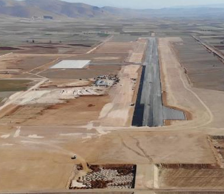 Çalışmaların hızla devam ettiğini belirten projenin saha sorumlusu, mühendis Basri Kayhan, "Pistimiz 3 kilometre uzunluğunda ve 60 metre genişliğindedir. Toplam 3 milyon metrekarenin üzerinde kamulaştırma alanına sahip bir alanımız var. 11 bin 632 metre çevre güvenlik çiti, 9 bin 447 metre çevre güvenlik yolu da projemizin ek imalatlarıdır. Bununla beraber asfalt imalatımız, kaliteli ve apron beton çalışmalarımız da tamamlanmış durumda. 3 milyon 600 metreküpün üzerinde GAİ dolgu yaptık. 890 bin metreküpe yakın da yine kaya dolgu tapmış bulunmaktayız. Konkase dolgumuz, temel altı dolgumuz ve temel dolgumuz tamamen şu an itibariyle bitti. Artık ince detay imalatlarımız kaldı. Şu an sanat yapılarıyla ağırlıklı olarak ilgileniyoruz. Menfezler, çevre güvenlik çiti ve elektrik altyapısıyla ilgileniyoruz. Şu an dolgumuzun yüzde 99'ı da bitmiş durumda" dedi.