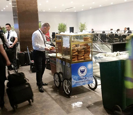 Hava İş Sendikası, uçuş ekiplerine mağdur olmamaları için sabahları simit ve peynir dağıtıyor.