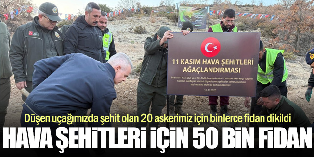 Kahraman şehitler anısına ağaçlandırma sahasında alan oluşturduklarını da belirten Çiçekli, "Geçtiğimiz günlerde meydana gelen uçak kazasında 20 vatan evladını şehit verdik. Kahraman şehitlerimize ithafen 50 bin fidanı toprakla buluşturduk. Şehitlerimizin mekanları cennet olsun. Allah geride kalan yakınlarına sabır versin. Milletimizin başı sağ olsun" dedi.