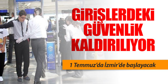 Yeni kararlara göre, 1 Temmuz'da İzmir'deki Adnan Menderes Havalimanı'nında başlatılacak uygulamada havalimanı binasına girişte yapılan güvenlik uygulaması yolcuların konforunu sağlamak ve yolcu akışını hızlandırmak amacıyla sona erdirilecek.