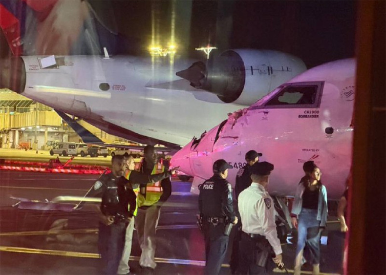 New York LaGuardia Havalimanı’nda Delta Airlines'a ait iki yolcu uçağı apronda pistte çarpıştı. Kazada bir kabin görevlisi hafif şekilde yaralandı.
