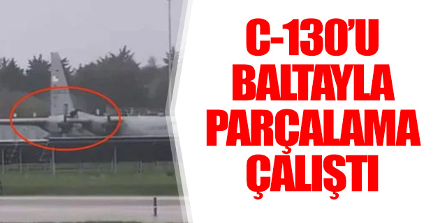Havalimanının tellerini aşarak uçağın park halinde bulunduğu alana giden bir şahıs, uçağa çıkarak elindeki baltayla gövdeye ve kanada zarar verdi.