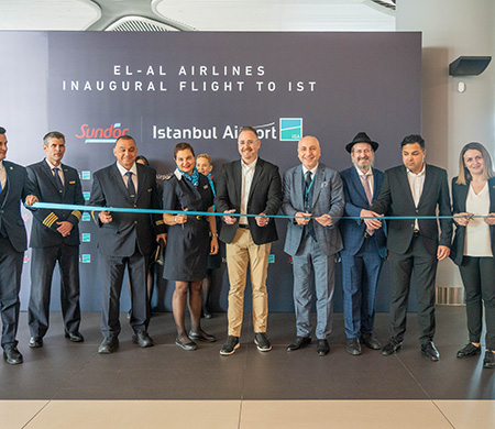 İsrail’in önde gelen hava yolu şirketlerinden Sun d’Or’un İGA İstanbul Havalimanı’na ilk uçuşunu 30 Mart Perşembe günü düzenledi. İGA İstanbul Havalimanı Dış Hatlar Gelen Yolcu katı D8 kapısında karşılama etkinliğine imza atıldı. Törene, Sun d’Or Havayolları CEO’su Gal Gershon katılırken, İGA İstanbul Havalimanı’nı törende CEO Danışmanı Melih Mengü temsil etti.