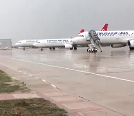 Olumsuz hava şartlarından dolayı içlerinde Türk Hava Yolları’na ait uçakların da bulunduğu toplam 10 uçak Bursa’da Yenişehir Havalimanı’na iniş yaptı.