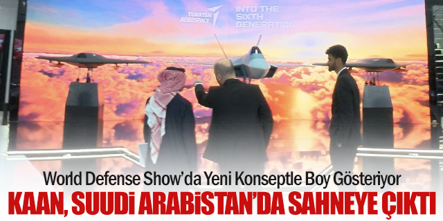 Suudi Arabistan’da düzenlenen World Defense Show’da, Türk Havacılık ve Uzay Sanayii tarafından geliştirilen KAAN savaş uçağı, teknoloji ağırlıklı yeni bir tanıtım konseptiyle ziyaretçilere sunuldu.