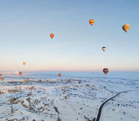 Türkiye’nin önemli turizm merkezlerinden Kapadokya’da olumsuz hava şartları nedeniyle 11 gündür iptal olan sıcak hava balon turları bu sabah yeniden yapıldı. Kar yağışı ve soğuk hava nedeniyle 11 gündür Sivil Havacılık Genel Müdürlüğü tarafından balon uçuşlarına izin verilmemesinin ardından bu sabah erken saatlerde yeniden havalanan sıcak hava balonlarına bine yerli ve yabancı turistler karlarla kaplı peribacalarını kuşbakışı izlemenin mutluluğunu yaşadı.