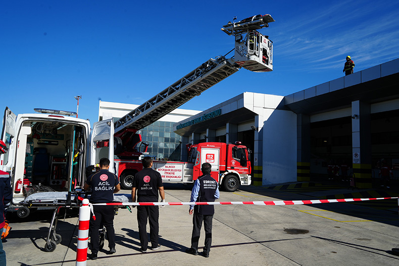Koca Seyit Havalimanı Müdürü Taner Ödemiş yönetiminde yapılan tatbikatta ayrıca deprem sahasında çıkan yangına ekipler kısa sürede müdahale etti. Ekiplerin eğitim seviyesi, disiplinli çalışmaları, zaman yönetimi ve profesyonel ekipmanları dikkat çekti.