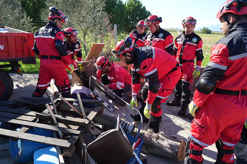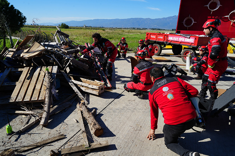 Tatbikata Edremit Koca Seyit Havalimanı ARFF Arama Kurtarma Timi, 112 Acil Sağlık ekipleri, Havalimanı Polis Ekipleri, Balıkesir Büyükşehir Belediyesi İtfaiyesi Edremit Grup Amirliği ekipleri ve Edremit Belediyesi Afet İşleri Müdürlüğü Arama Kurtarma Ekibi katıldı. Senaryo gereği yaşanan deprem sonrasında göçük altında kalanlar, akustik dinleme cihazı ve enkaz altına girebilen kamera sistemleriyle tespit edildi. Çeşitli kurtarma teknikleri kullanılarak yaralılar enkaz altından çıkarılıp sağlık ekiplerine teslim edildi. Çatıda mahsur kalan bir kişi ise itfaiye merdiveniyle bulunduğu yerden indirildi ve sağlık ekiplerine teslim edildi.