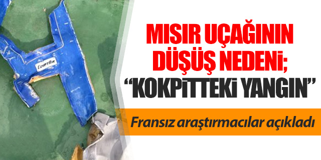 Paris Kahire seferini yaparken Akdeniz açıklarında denize çakılan Mısır Havayollarına ait MS804 sefer sayılıuçağın düşüş sebebinin kokpitte çıkan yangın olduğu açıklandı.