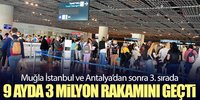 Türkiye'de İstanbul'dan sonra iki uluslararası havalimanına sahip Muğla'ya gelen yabancı turistlerin 2 milyon 492 bin 039'u uçak ile geldi. Dalaman Havalimanına 9 ayda 1 milyon 638 bin 338 yabancı turist uçak ile iniş yaparken, 853 bin 701 yabancı turist de Milas-Bodrum Havalimanında iniş yaptı. 545 bin 425 yabancı turist ile Marmaris, Fethiye, Bodrum, Datça ve Milas'taki deniz gümrük kapılarından giriş yaptı.