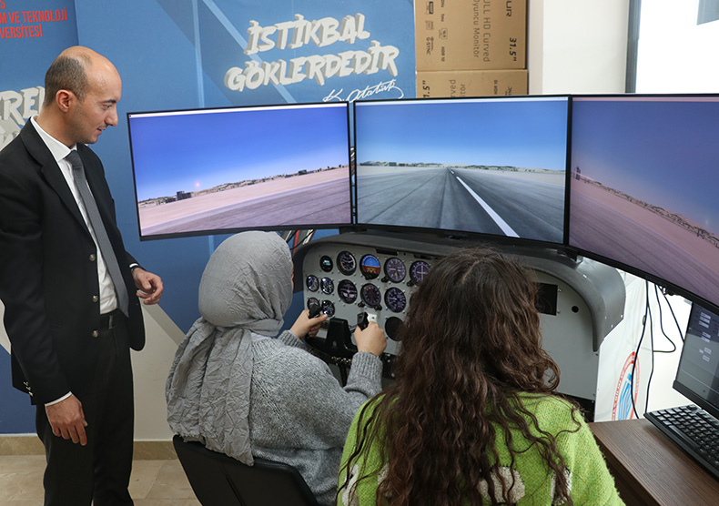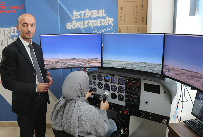 Sivas Bilim ve Teknik Üniversitesi’nde (SBTÜ) öğrenciler, birebir modellenmiş eğitim uçağı simülatörü ile uygulamalı uçuş eğitimi alıyor. Gerçek kokpit yapısına sahip simülatör, öğrencilere uçuşun temel aşamalarını deneyimleme imkânı sunarken, sektöre hazır bir şekilde mezun oluyorlar.