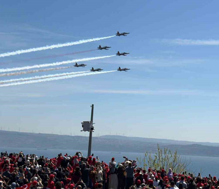 Çanakkale Kara Savaşları’nın 111’inci yıl dönümü anma programları, Şehitler Abidesi’nde Türk Yıldızları gösterisiyle son buldu.