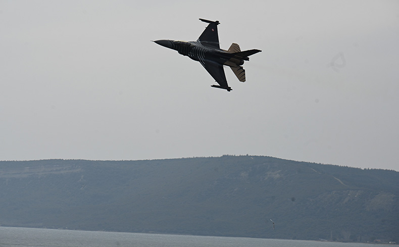 Türk Hava Kuvvetlerinin akrobasi timi SOLOTÜRK, 18 Mart Çanakkale Deniz Zaferi'nin 111'nci yıl dönümünde Çanakkale'de gösteri uçuşu gerçekleştirdi.
