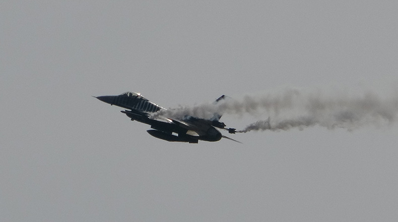 10 dakika süren gösteride, F-16 pilotlarının alçak uçuşu, izleyenlere heyecan dolu anlar yaşatırken, nefesleri kesti.