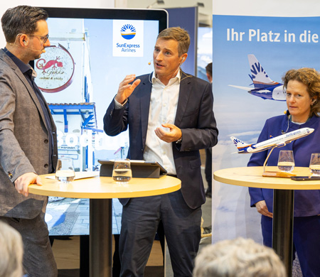 SunExpress ev sahipliğinde düzenlenen panel, tur operatörlerinden hava yolu şirketlerine, otellerden turizm profesyonellerine çok sayıda ziyaretçiden yoğun ilgi gördü. Panelde SunExpress CEO’su Max Kownatzki, TUI Almanya CEO’su Stefan Baumert ve Berlin Brandenburg Havalimanı CEO’su Aletta von Massenbach turizm ve seyahat sektörüne dair değerlendirmelerde bulundu.