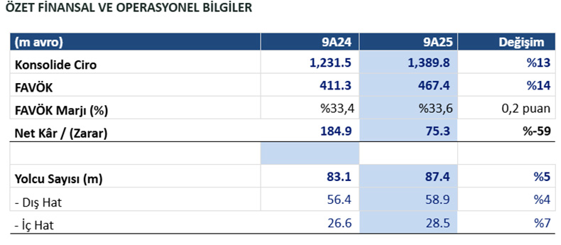 Çeşitlendirilmiş portföy yapımız, sürdürülen ticari iyileştirmeler ve temkinli sermaye tahsisi yaklaşımımız olası krizlere karşı dayanıklılığımızı pekiştiriyor. Döviz kurlarındaki dalgalanmaları ve jeopolitik gelişmeleri yakından takip ederken; operasyonel mükemmellik, yolcu deneyimi ve değer odaklı büyüme stratejilerimizi önceliklendiriyoruz. Tüm çalışanlarımıza, hissedarlarımıza ve iş ortaklarımıza en içten teşekkürlerimi sunuyorum” dedi.