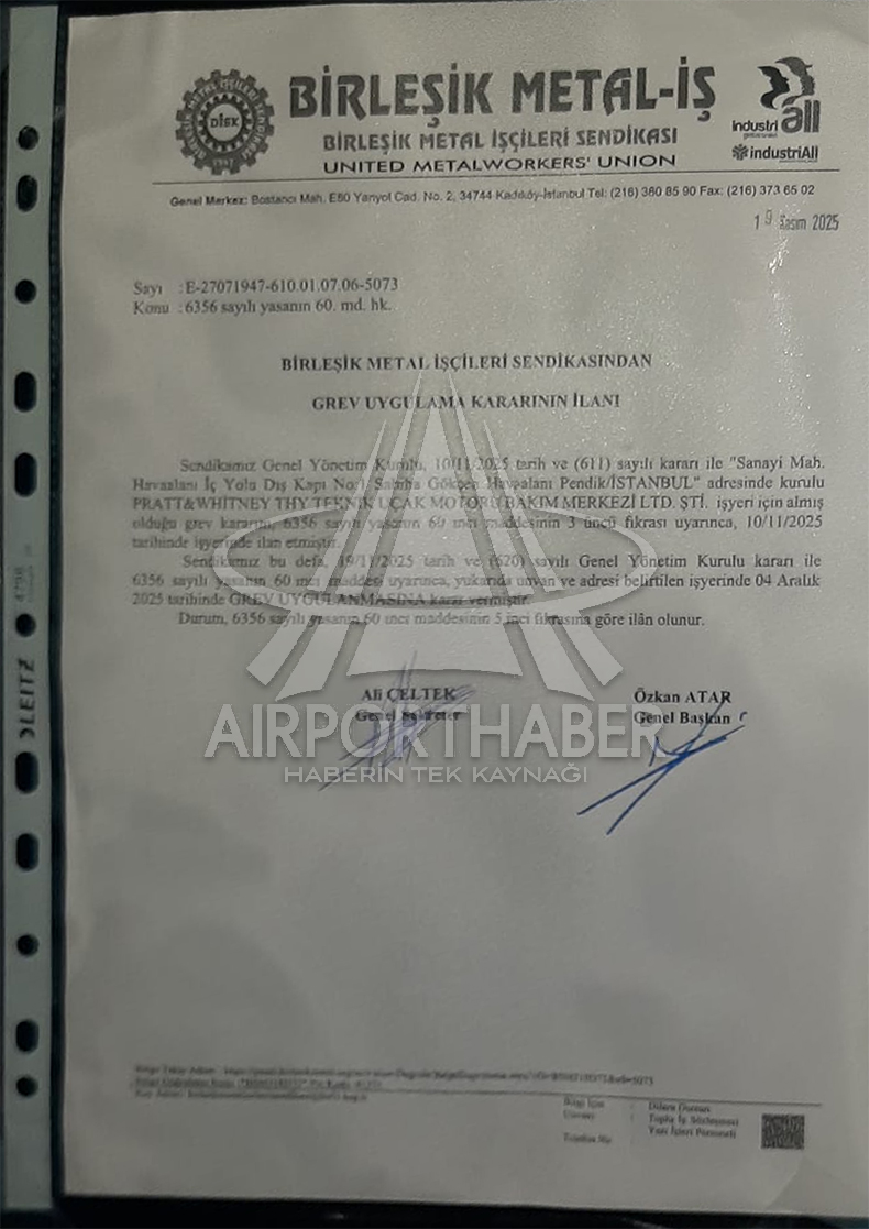 THY Teknik ve Pratt & Whitney ortak kuruluşu olan Turkish Engine Center (TEC)’ta toplu iş sözleşmesi uyuşmazlığı sonrası grev süreci resmen başladı.