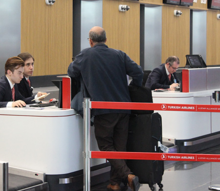 D-E kontuarlarında iç hatlar yolcularına hizmet veren THY, E-F ve G kontuarlarında dış hatlar yolcularına, özel güvenlik prosedürleri uygulandığı için H kontuarında İngiltere ve J kontuarında ise ABD yolcularına hizmet veriyordu.
