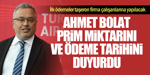 Türk Hava Yolları'nda (THY) uzun süredir beklenen prim konusu netleşti. THY Yönetim Kurulu Başkanı Ahmet Bolat, personele verilecek prim miktarını bizzat duyurdu.