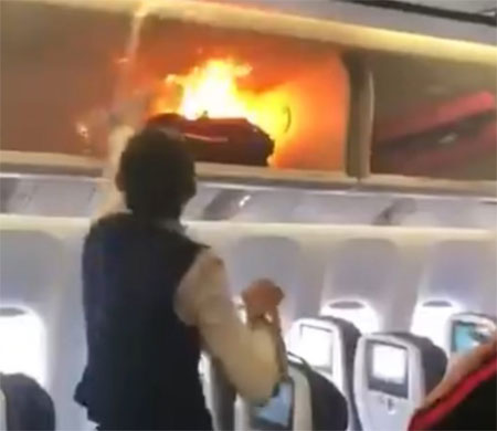 Yolcuların uçağa yerleştiği sırada bir yolcuya ait powerbank, el bagajında aşırı derecede ısınarak alev aldı. Yangını gören diğer yolcular panik içinde kaçışırken, bazı yolcular uçaktan dışarı çıktı. Kabin ekibi yolculara ikram edilecek içeceklerle yangına müdahale etti.