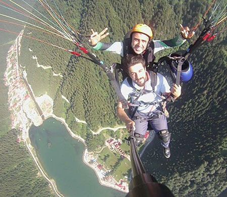 Uzungöl Ekstrem Doğa Sporları öncülüğünde deneyimli yamaç paraşütü pilotları kontrolünde 2000 rakımda Uzungöl’e 850 metre uzaklıkta Lustra Yaylası eteklerinde konuşlanan paraşütçüler adeta bulutların üzerinden atlayarak, muhteşem bir yamaç paraşütü tecrübesi yaşıyorlar. Yapılan uçuşlarda gökyüzünden doğanın harika manzarasını yeşilin her tonunu, Uzungöl’ün manzarasının tadını çıkarırken, uçuş esnasında fotoğraf veya video çekimleri yaparak, adrenalin en üst seviyede yaşıyorlar. Özellikle bölgede bulunan Arap turistlerin büyük ilgi gösterdiği yamaç paraşütüne olan ilgi, çift kişilik tandem uçuşlarda, paraşütü kullanan grup üyesi, gezdirdiği turistin uçuşunu selfie çubuğuna takılı kamera ile baştan sona görüntülüyor. Uzungöl’e 850 metre uzaklıkta başlayan uçuşlarda zaman zaman ilginç görüntüler de oluşuyor.