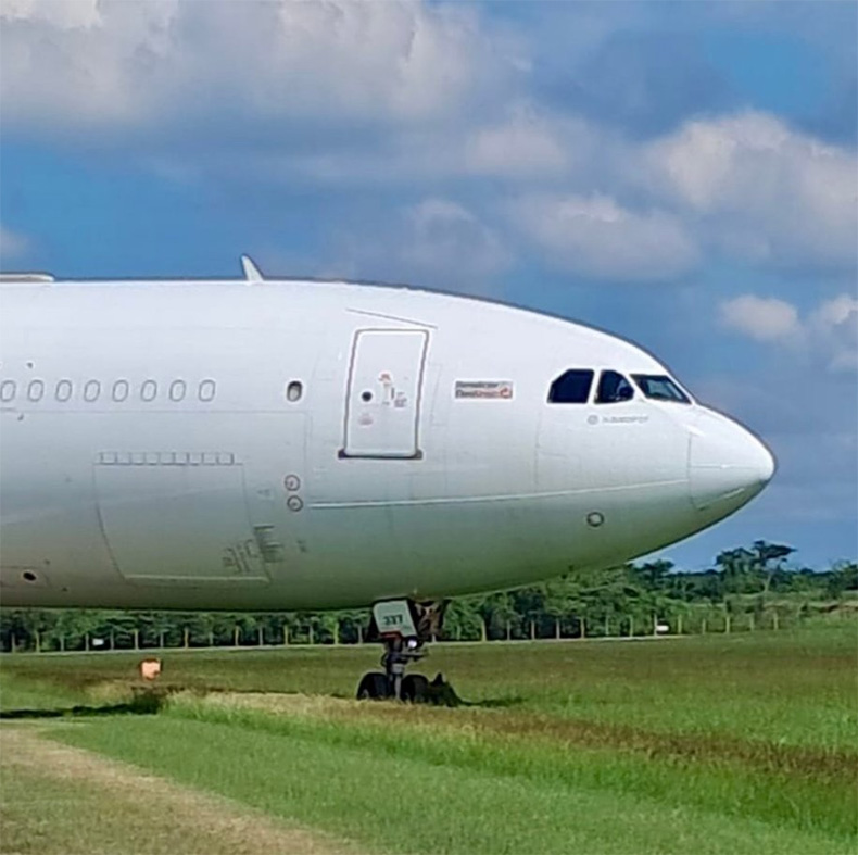 Edinilen bilgiye göre; Honduras'taki San Pedro Sula La Mesa Uluslararası Havalimanı'ndan kalkış yapacak Avianca Cargo México'ya ait Airbus A330-343 tipi kargo uçağı, taksi yaptığı sırada yoldan çıkarak çim alana girdi. Lastikleri buraya saplanan uçakta herhangi bir yaralanma bildirilmedi.