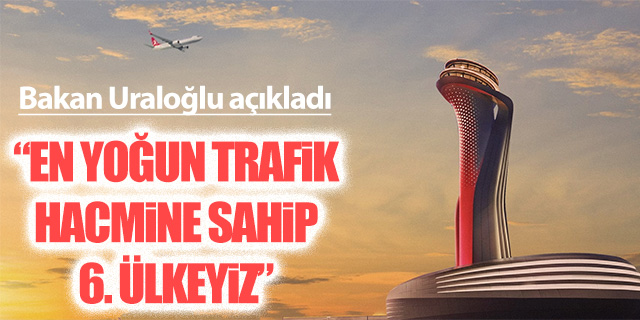 Ulaştırma ve Altyapı Bakanı Abdulkadir Uraloğlu, Türkiye'nin günlük ortalama 2 bin 442 uçuş ile Avrupa'da en yoğun trafik hacmine sahip ülkeler arasında 6'ncı sırada yer aldığını açıkladı.